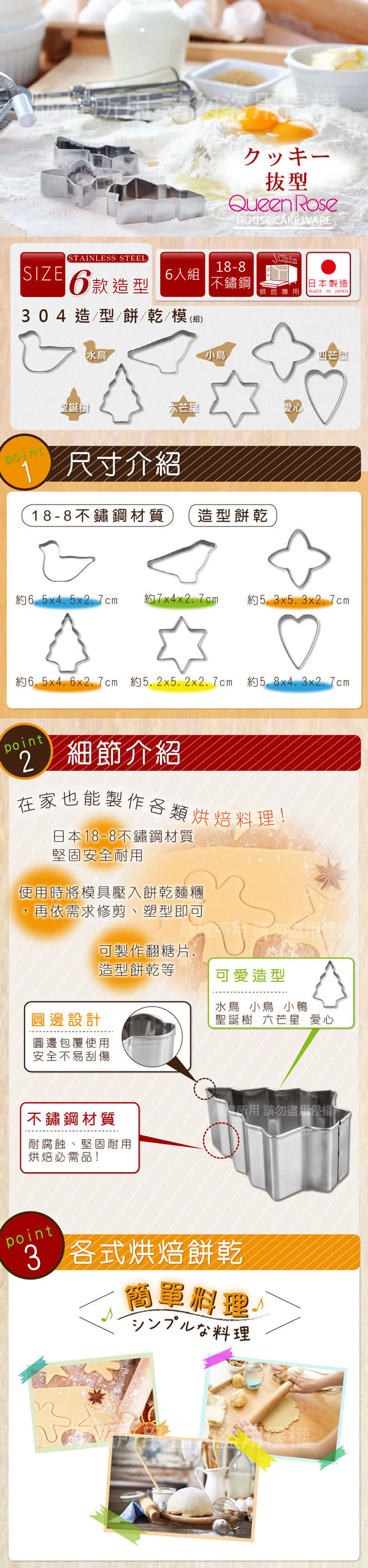 【QueenRose】日本18-8不?鋼6入造型餅乾模-大(日本製)耐用嗎衛生安全嗎Ptt及mobile01推薦的人多嗎